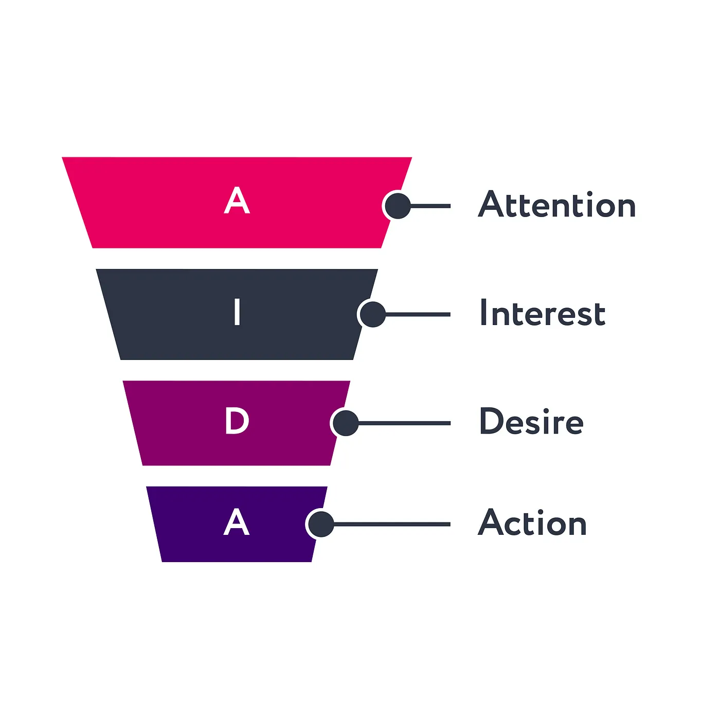 Simple, familiar one-page websites based on the classic AIDA marketing model: Attention → Interest → Desire → Action, suggest that the user goes through a top-down funnel before buying a product or service.