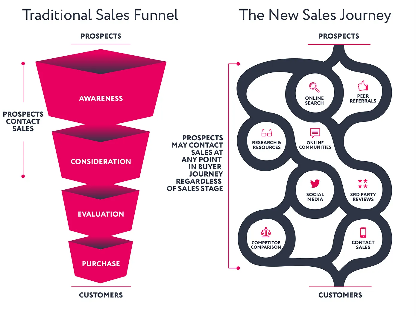 However, if the product has been on the market for a long time, there is no need to warm up the audience, and the decision cycle is short, then there is no need to intentionally complicate the user path — the traditional funnel model will do.